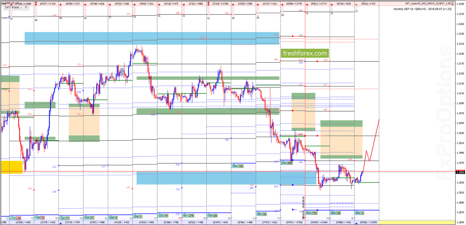 Месячные опционные контракты, торгуются в зоне комфорта выше баланса дня 1.2935. Доминирующая позиция у продавцов. Отработка потоковых долгов и стремление цены в область премии аномального контракта 1.3124,по-прежнему в приоритете. Образованы новые контракты покупателей ниже уровня премии границы рынка. Стремление цены к уровню 1?2 маржинальной контрольной зоне 1.3060, так же является основным сценарием текущей недели.