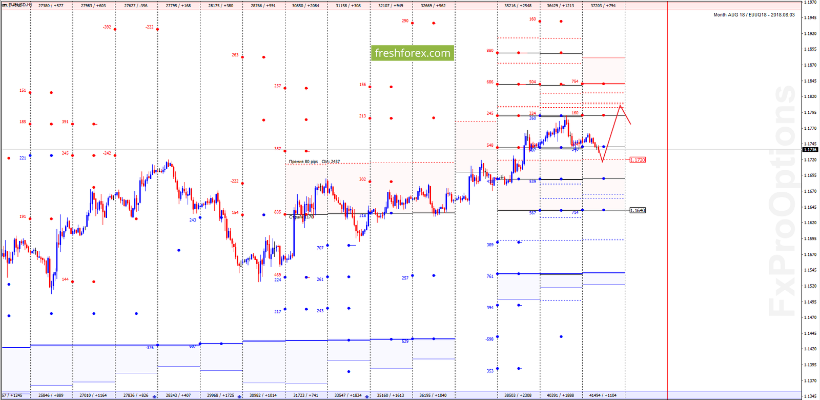 Месячные опционные контракты торгуются в зоне комфорта, ниже уровня баланса дня 1.1753. Доминирующая позиция у покупателей. Основная поддержка на уровне 1.1720. В случае пробоя баланса дня, рост актива в приоритете. Текущее сопротивление сконцентрировано в области 1.1802 – 1.1810. Покупки с обновлением максимумов, основной сценарий текущего дня.