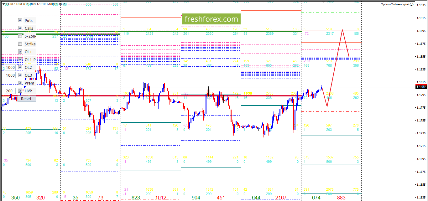 Недельные опционные контракты торгуются в зоне комфорта. Доминирующая позиция у покупателей. Ниже уровня 1.1794 цена не проэксперируется. Максимально проторгованный объём на балансе дня 1.1850. Благоприятный день для покупок.