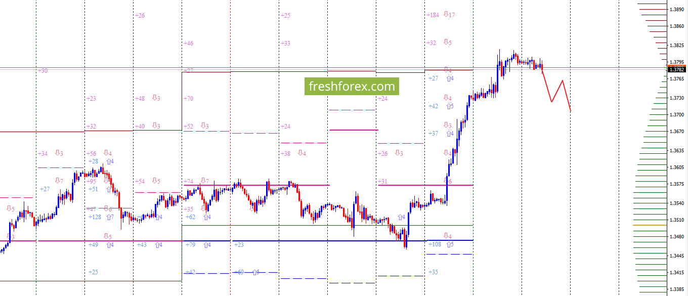 Торговые решения: Sell 1.3808 – 1.3780 take profit 1.3707 – 1.3696.