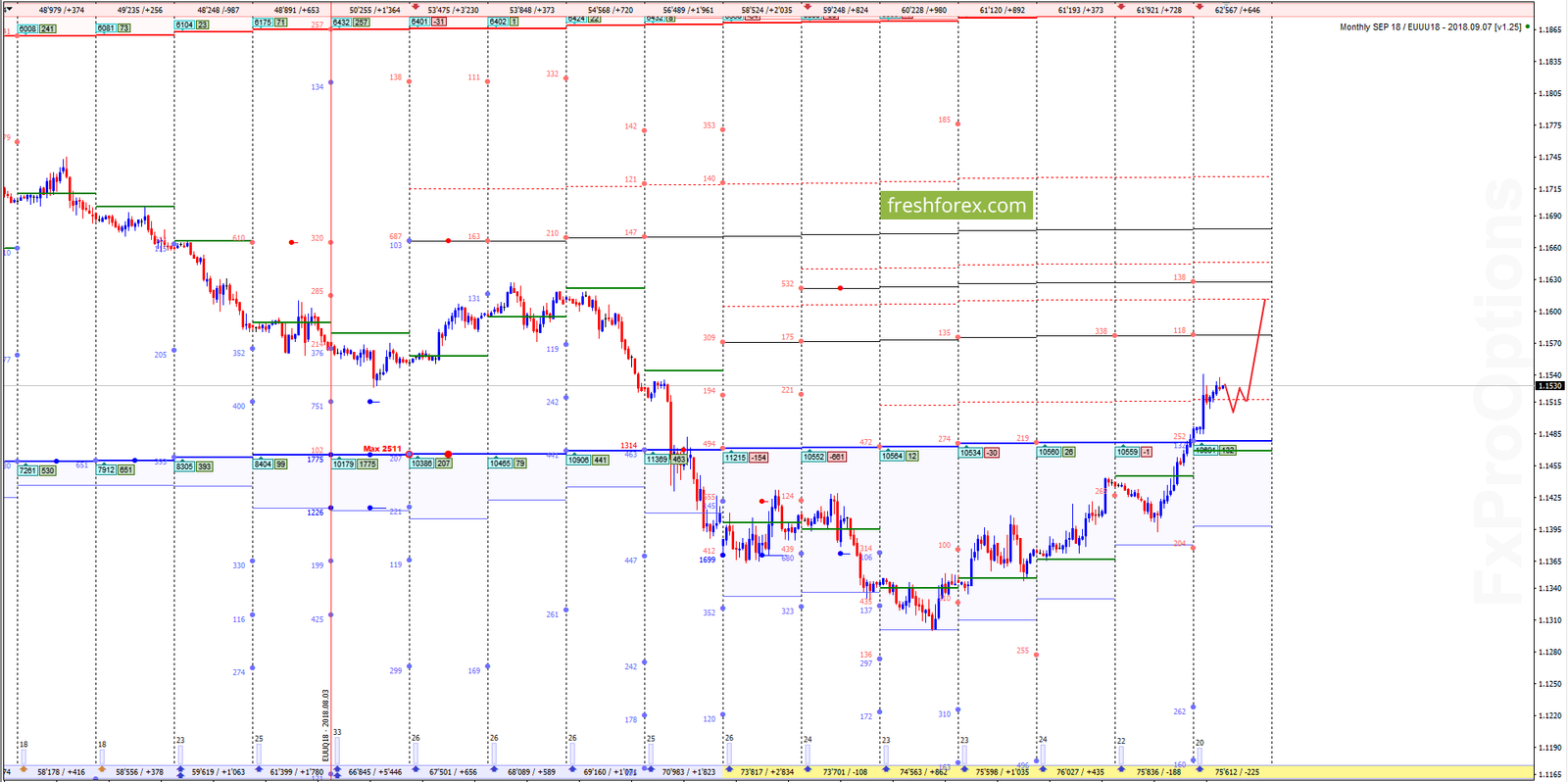 Месячные опционные контракты, торгуются в зоне комфорта выше баланса дня 1.1469. Доминирующие силы на стороне покупателей. Однозначная фиксация прибыли где покупки из зоны убытков производились ещё с предыдущей недели. На данном этапе, основной поддержкой является уровень страйка с балансом дня 1.1478. целью на данный момент является уровень 1.1647.