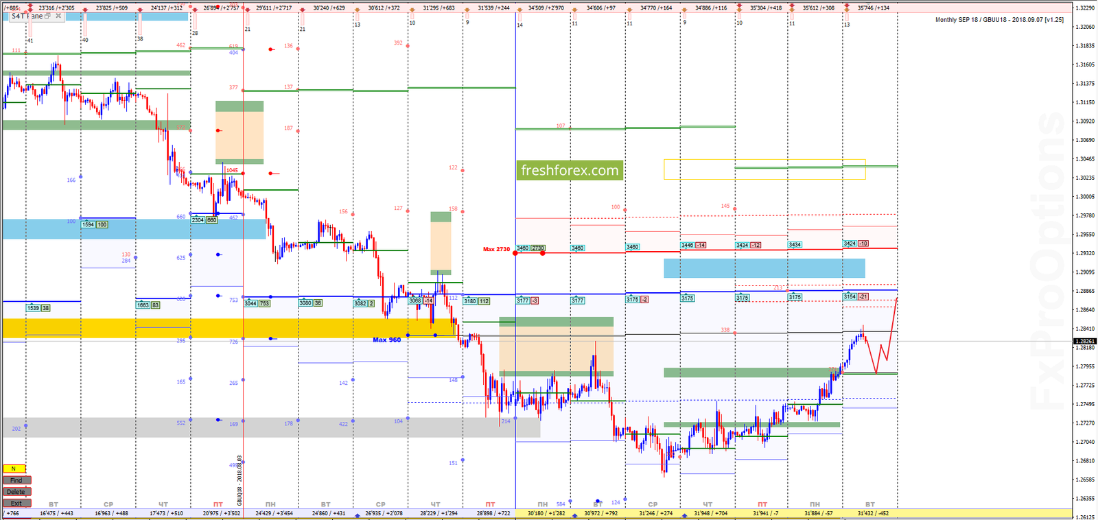 Месячные опционные контракты, торгуются в зоне убытков выше баланса дня 1.2787. Доминирующая позиция у продавцов. Выход из зоны убытков основной сценарий второго опционного цикла. Пограничной областью сопротивления, является уровень 1.2979.