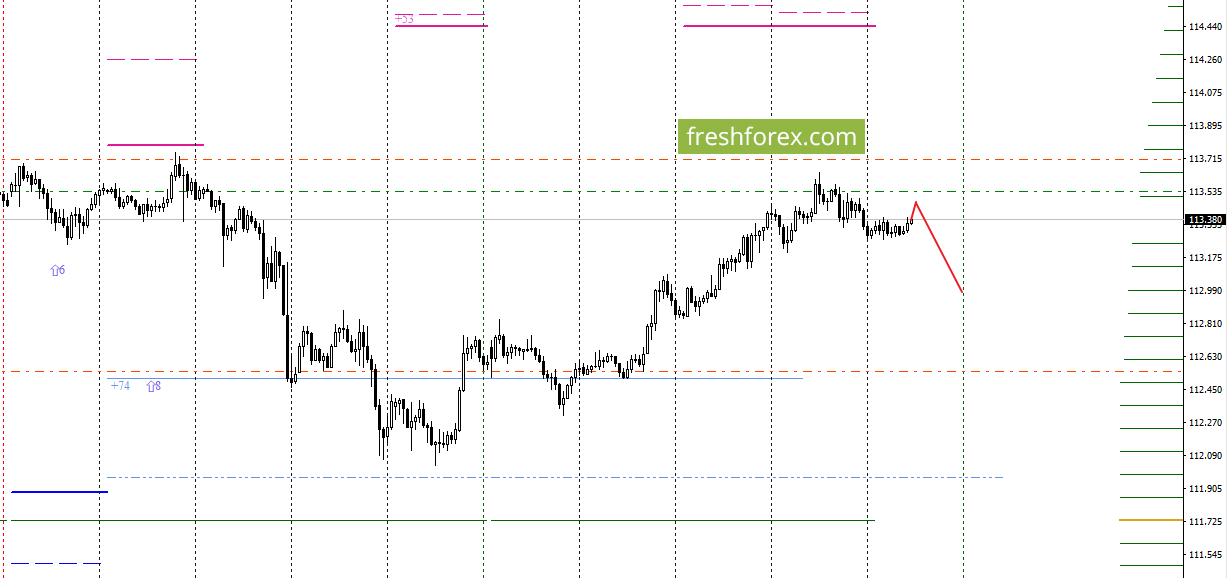 Торговые решения: Sell 113.48 – 113.37 take profit 112.90 – 112.70.