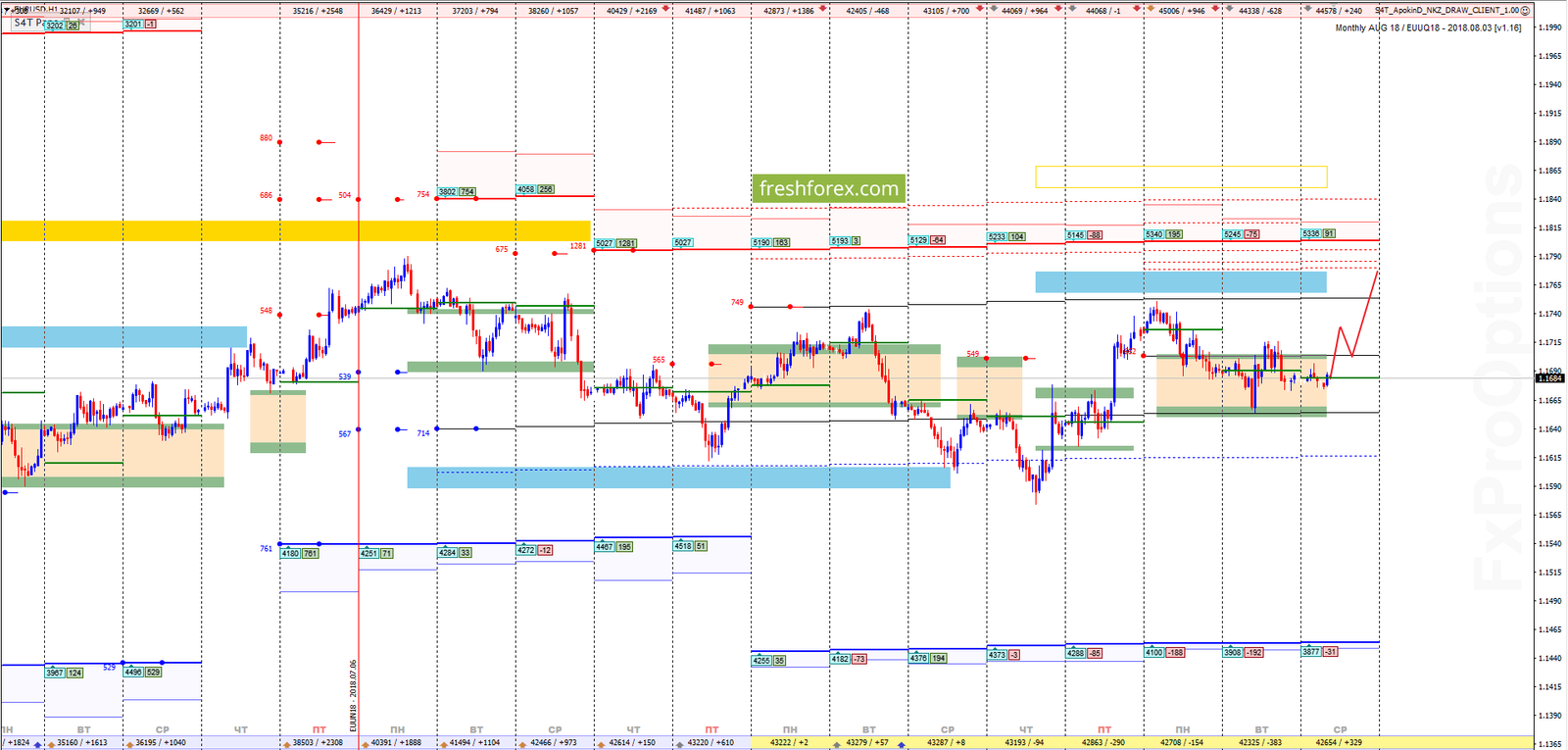 Месячные опционные контракты, торгуются в зоне комфорта. Цена торгуется выше баланса дня 1.1684. Доминирующие силы на стороне продавцов. Сильное сопротивление для роста расположено в области цен 1.1779 – 1.1796. Покупки из области выгодных цен при ретесте баланса, основной сценарий дня.