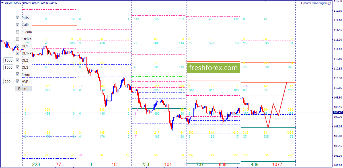 Месячные опционные контракты, торгуются в зоне комфорта. Снижения цены до аномального контракта произошло. Баланс дня на уровне 109.41. Максимальный объём на уровнях 108.85. Основная поддержка текущего контракта на уровне 108.82. В случае пробоя баланса, падение пары продолжиться. Отчёты СОТ, подтверждают среднесрочную тенденцию роста.