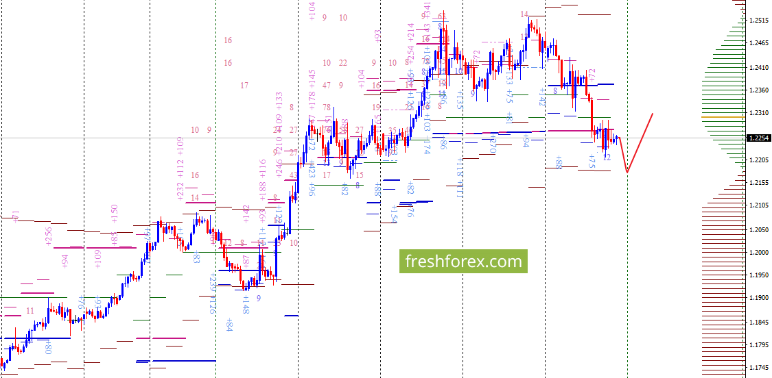 Недельные контракты торгуются в зоне комфорта ниже уровня дистрибуции 1.2272. Границы рынка на прежнем уровне. Происходит набор опционов, в новом контракте. Граница убытков макркетмейкера на уровне 1.2182, где покупки выглядят очень привлекательными.