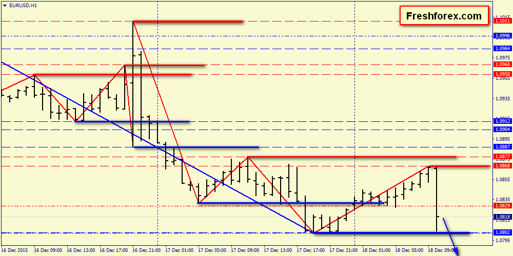 18 декабря 2015, EUR/USD. Ищем входы вниз на откатах вверх.