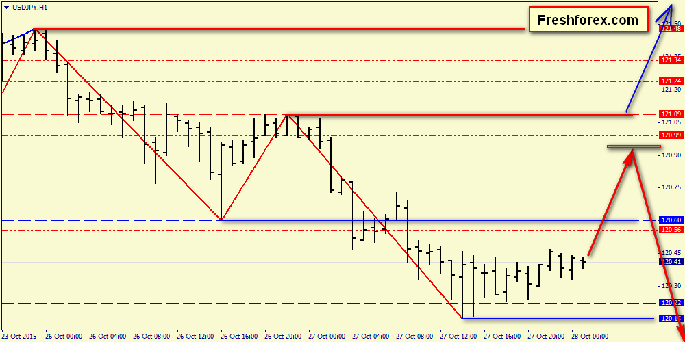 1) При формировании шорт-сигналов в зоне 121.00 - продаем со стопами выше 121.09 и целью 120.00.
