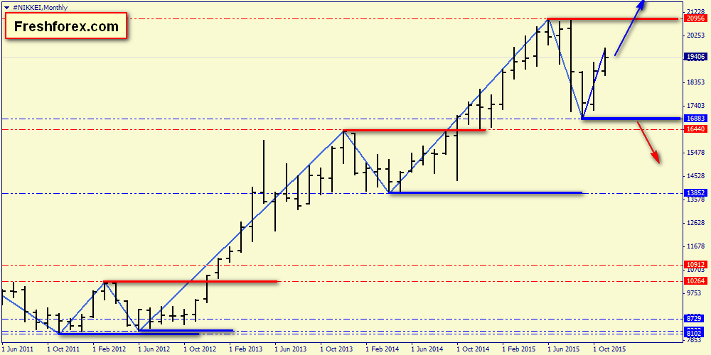 Месячный график: восходящий свинг укомплектован, явных сигналов к его остановке пока не было, но бар сформирован лишь наполовину и произойти еще может всякое. Для сохранения общего бычьего тренда необходимо пробивать последнюю вершину (20956), для разворота вниз - нужно пробить последнее дно (16883).