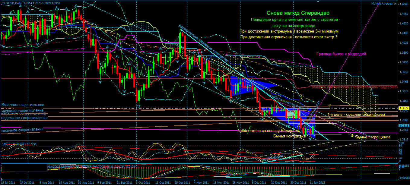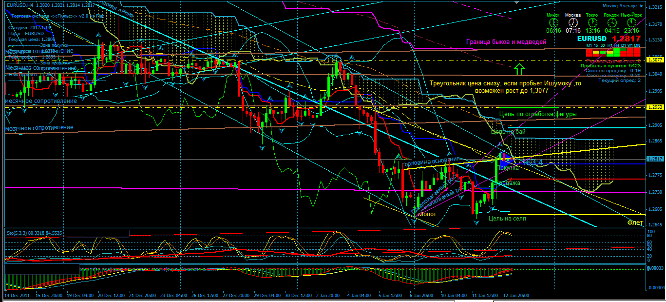 Прогнозирую рост, но помним в уме возможность тестирования минимума, т. к. пара не пробила вчера экстремум 3, плюс сегодня пятница,- день сюрпризов, да еще и 13. Абориген протестировал вчера максимум, и отыграв назад консолидируется, возможно, для пробоя сопротивления дневного тренда.