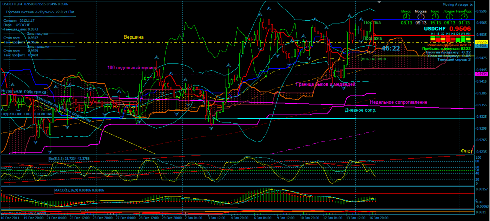 Отбившись от дневной поддержки, пробил Fibo 61,8 на дне. Если пробъет дневное сопротивление, то мама дорогая! Если не пробьет, то флэт,- пара евро/абориген может тормозить. Но, в свою очередь абориген/франк и абориген/самурай могут толкать вверх сильнее, чем само движение евро.