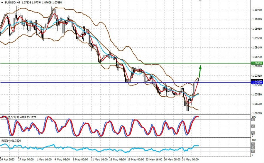 Так почему в ситуации повышения спроса на рисковые активы и публикацию данных о большем, чем предполагалось, снижении уровня потребительской инфляции в еврозоне, евровалюта получила поддержку? Ведь снижение инфляции в годовом выражении до 6.1% с 7.0% при прогнозе в 6.3%, а в соотношении месяц к месяцу отсутствие ее роста в мае против ожидания повышения на 0.6% должно было оказать прессинг на нее из-за вероятности того, что ЕЦБ сделает паузу в повышении ставок. Но этого не произошло. И главная причина снова кроется в том, что происходит в Штатах.