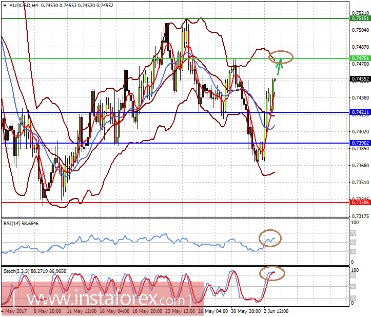 Пара AUDUSD получила поддержку на волне позитивных данных из Китая индекса деловой активности в секторе услуг от Caixin. Вероятно, что цена еще подрастет к 0.7475, но рост, скорее всего, будет ограничен этой отметкой.