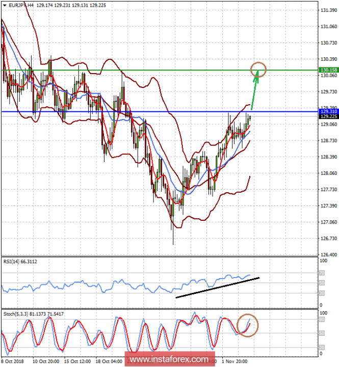 Пара EURJPY торгуется под уровнем 129.30. Пара также имеет потенциал для локального роста на волне позитивных данных по инфляции из еврозоны. Пересечение ценой уровня 129.30 может привести пару к росту к 130.15.
