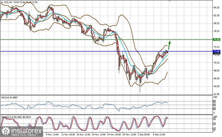 Цены на сырую нефть марки WTI торгуются ниже отметки в 73.00 доллара за баррель. Высокий спрос на этот продукт на фоне зимы, а также ожидание того, что ОПЕК+ не будут менять в будущем свой подход в политике, будет стимулировать рост цен. В этой связи рост выше уровня в 73.00 приведет к повышению цены к 76.00.
