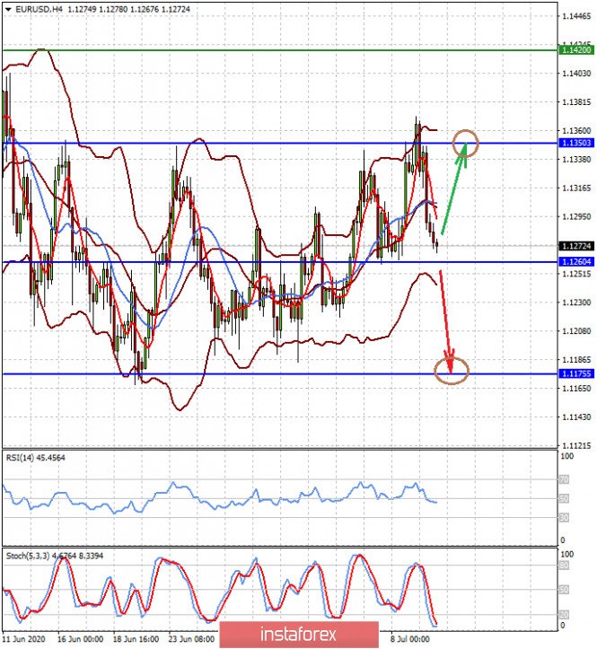 Пара EURUSD снова находится под давлением на волне падения риск-аппетита на рынках под влиянием роста заболеваемости коронавирусом в Штатах. Цена находится выше отметки 1.1260, если настроения на рынках улучшатся, то пара снова начнет подрастать к 1.1350. В то же время если она снизится ниже уровня 1.1260, стоит ожидать ее падения к 1.1175.