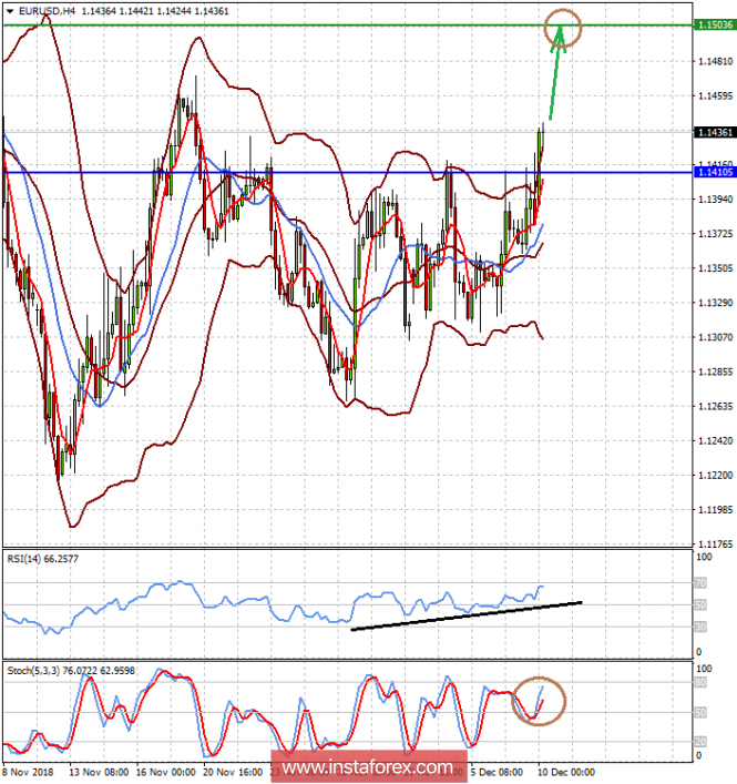 Пара EURUSD торгуется выше уровня поддержки 1.1410 на волне локальной слабости американского доллара. Если цена удержится выше этой отметки, есть вероятность продолжения ее роста до 1.1500.