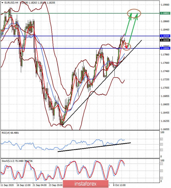 Пара EURUSD торгуется ниже уровня 1.1830 и может скорректировать вниз к 1.1800, прежде чем продолжит рост к 1.1885. Но также есть вероятность ее роста к этой отметке, если она вырастет выше уровня 1.1830.