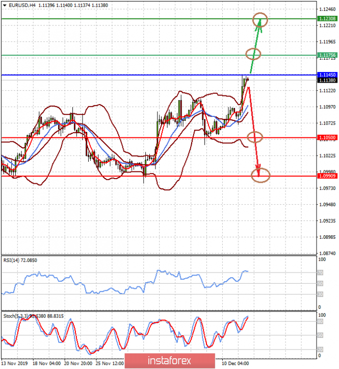 Пара EURUSD может сегодня как вырасти, так и упасть по итогам заседания ЕЦБ. Если банк откажет от проведения широких мер стимулирования, пара, пробив уровень 1.1145, устремится к 1.1175 с перспективой роста к 1.1230. В то же время решение проводить эти меры окажет на пару давление, и она может упасть к 1.1050 с возможность дальнейшего снижения к 1.0990.