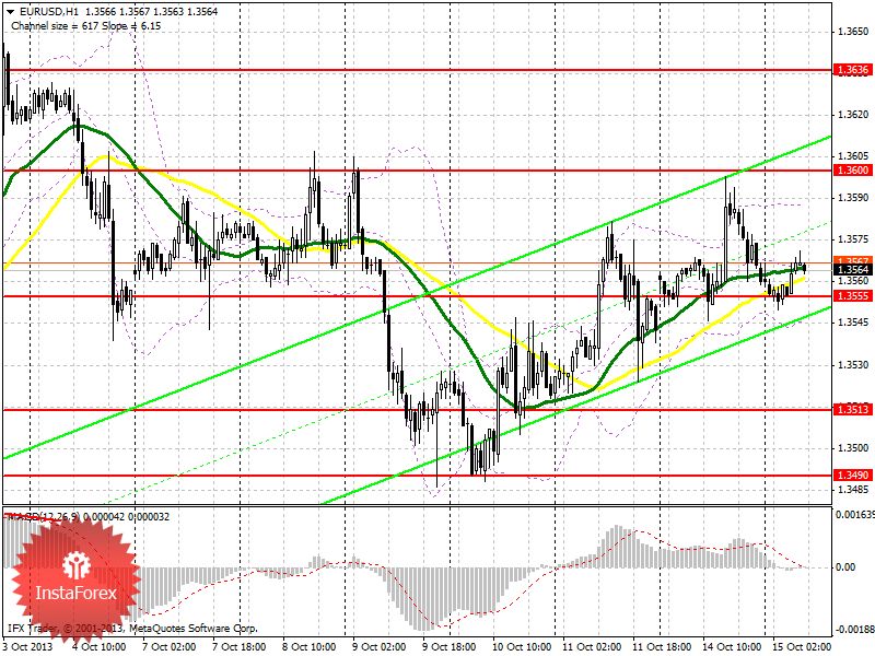 Несмотря на волатильность торгов, объемы и сильные игроки в этих движениях участия не принимали. Резкий рост евро в первой половине дня сумел сохранить восходящую тенденцию. Нижняя граница данного канала расположена в области минимума 11 октября 1.3518, в то время как верхняя граница расположилась в области максимума 11 октября 1.3567 и максимума вчерашнего дня 1.3598.
