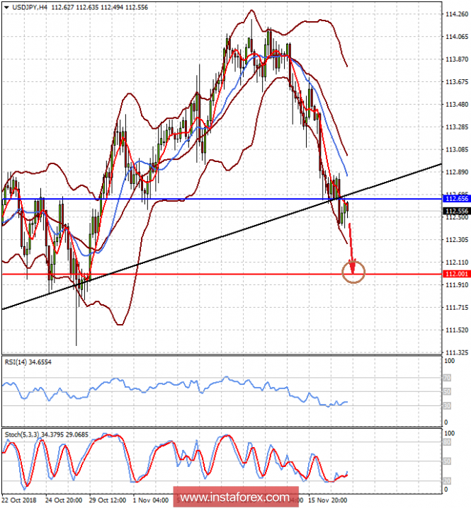 Пара USDJPY торгуется под уровнем 112.65. На нее оказывает давление ожидание возможной паузы в повышении ставок ФРС в декабре, а также неопределенность в том, будет ли достигнуто соглашение между Штатами и Китаем на саммите G20. Можно предположить, что если пара не поднимется выше отметки 112.65, то она продолжит локальное падение к 112.00.
