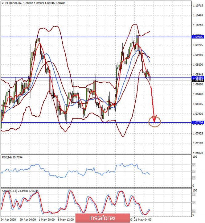 Пара EURUSD остается в боковом диапазоне 1.0770-1.1000. Снижение и закрепление ниже отметки 1.0885 приведет к падению цены к 1.0770.