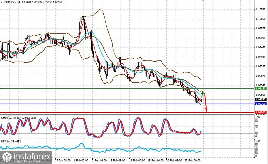 Пара торгуется выше уровня 1.0530. Некоторое улучшение настроений на рынке могут ее подтолкнуть вверх к 1.0615, но вряд ли стоит ожидать ее дальнейшего сильного роста, если данные по инфляции в еврозоне подтвердят факт ее снижения в феврале. На этой волне пара может развернуться и устремиться к 1.0480.