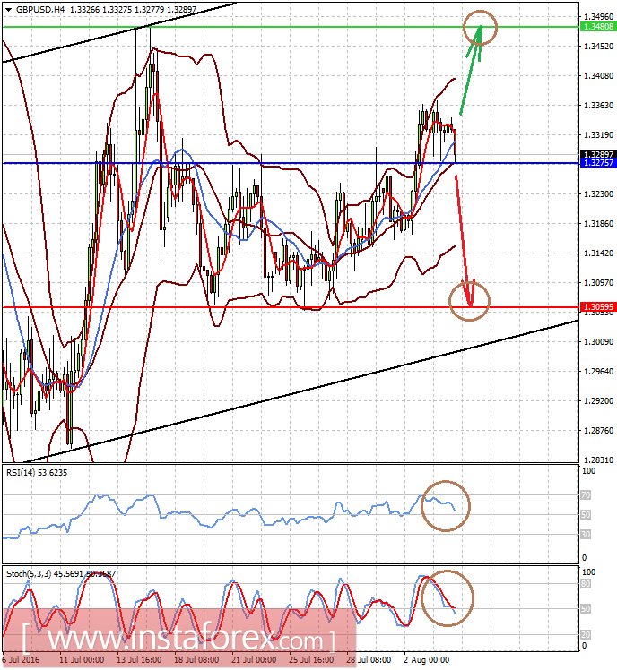 Пара GBP/USD умеренно снижается в ожидании вердикта Банка Англии по денежной политике. Если банк примет решение понизить ставки и расширить стимулы, пара, пробив уровень поддержки 1.3265, может устремиться к 1.3060, но если этого не случится, то цена может подскочить к 1.3480.