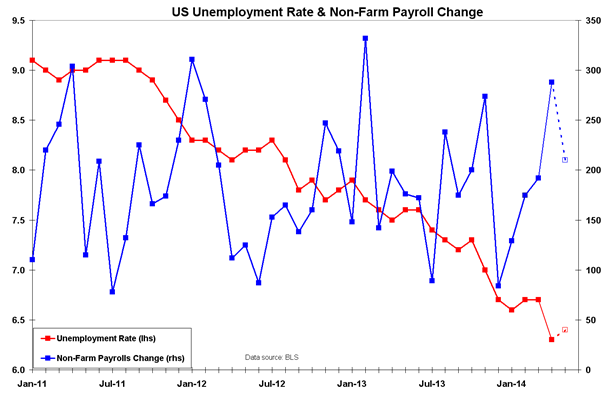 США: отчет о занятости за май (12:30 GMT). В апреле отчет о занятости, хотя и выглядел на первый взгляд обнадеживающе, таил в себе несколько серьезных проблем, и, согласно прогнозам, в мае ситуация будет аналогичной. Количество новых рабочих мест за исключением сельскохозяйственного сектора предположительно увеличилось на 210 000 (в апреле на 288 000), а уровень безработицы слегка поднялся с 6,3% до 6,4%.