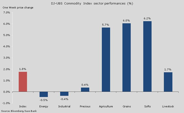 На прошедшей неделе все внимание было приковано к тому, как рос градус напряженности в отношениях между Западом и Россией из-за Украины. Волнения по поводу вооруженного конфликта, пусть даже непродолжительного, вызвали колебания на рынках в связи с возможным негативным влиянием на ключевые сырьевые товары, а именно газ, нефть и пшеницу. В течение недели цены на энергетических рынках понизились на фоне увеличения предложения из США и уменьшения спроса, в то время как сельскохозяйственный сектор продолжил стремительно расти, заняв все десять позиций в списке лидеров роста этой недели.