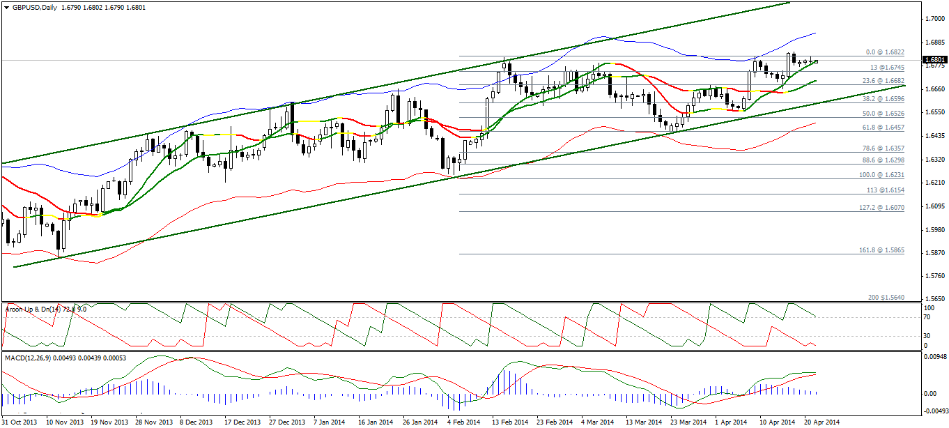 Пара столкнулась с трудностями в стабилизации выше уровня 1,6820, но учитывая стабильность выше уровня 1,6750 и торговлю в рамках восходящего канала, бычий сценарий остается в силе.