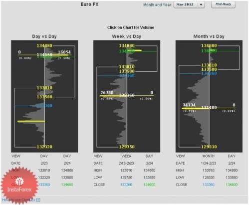 Фьючерс EUR/USD (6Е, март 2012 года) за 24 февраля 2012 года