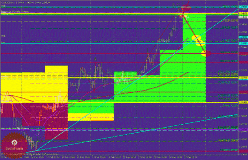 А,В,С – волновой анализ, от них строятся уровни Фибоначчи и точки разворота и продолжения тренда (красные горизонтальный линии).