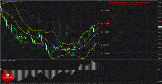 Валютный курс фунта 5 июня скорректировался к уровню 1,5289 и отскочил от него, поэтому восходящее движение может продолжиться, а MACD на текущей свече – развернуться наверх. Текущий сигнал на покупку – подтвержденный и сильный, так как Чинкоу Спан закрепился выше графика цены, а цена преодолела облако Ишимоку. На данный момент целью восходящего движения является второй уровень сопротивления 1,5379. В случае преодоления этого таргета, восходящее движение может продолжиться с целью третий уровень сопротивления 1,5520. Восходящее движение сохраняется до тех пор, пока цена находится выше Киджун-сен (1,5240), если цена закрепится ниже этой линии, то сигнал на покупку ослабится, а дальнейшее восходящее движение будет поставлено под вопрос, зато сможет вновь начаться нисходящее движение с целью пивот уровень 1,5148. Чинкоу Спан находится выше графика цены, что является подтверждением текущему сигналу на покупку и означает бычье настроение валютных трейдеров по этой валютной паре. Боллинджер Бандс показывает продолжение восходящего движения, полосы расширяются и направлены вверх, поэтому сейчас длинные позиции можно рассматривать. MACD направлен вниз, что свидетельствует о текущем коррекционном движении цены, разворот этого индикатора наверх может просигнализировать о возможном завершении коррекции. Отскок цены от уровня 1,5289 мог спровоцировать возобновление восходящего движения, а отскок от уровня 1,5379 может просигнализировать о новом витке коррекционного движения.