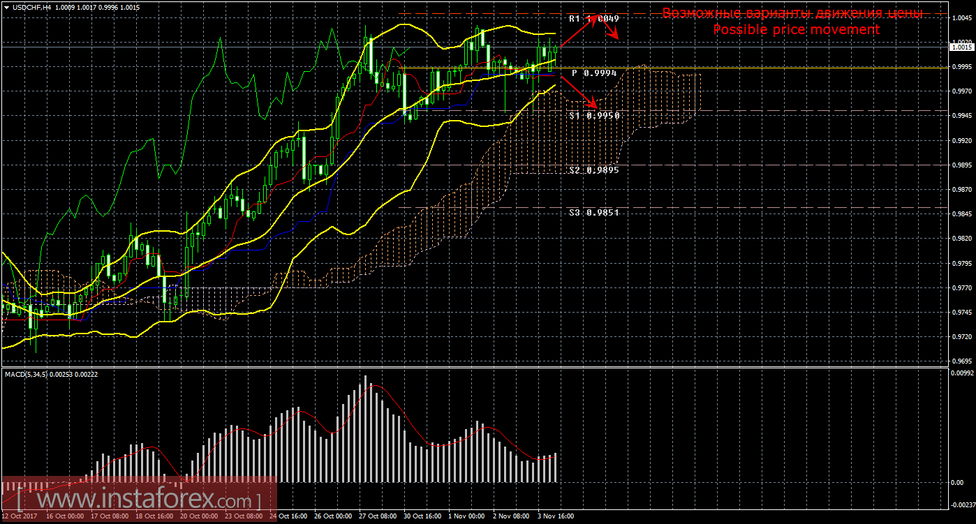 Валютная пара после снижения к верхней границе облака Ишимоку возобновила восходящий тренд благодаря американским экономическим данным. Помимо весьма оптимистичной безработице и количества новых созданных рабочих мест вне с/х сектора, порадовали производственные заказы и индекс деловой активности ISM в сфере услуг. А вот оба индекса деловой активности от Markit, в свою очередь, немного разочаровали трейдеров. Однако общий эффект от всего пакета экономических новостей все равно был положительный, хотя и довольно сдержанный. По крайней мере, несмотря на то что линии Тенкан-сен и Киджун-сен пересеклись, сигнал на покупку остается в силе, а значит актуальными остаются и ордера на покупку. Полосы Боллинджера направлены вверх, но сужаются. Таким образом, первый целью для движения вверх сейчас выступает первый уровень сопротивления 1,0049. Отскок цены от этого уровня может спровоцировать виток коррекционного движения к критической линии. Разворот индикатора MACD вниз также может означать начало нисходящей коррекции. Сегодня в Швейцарии будет опубликован индекс потребительских цен, который может составить 0,8% г/г, что является очень слабым значением, как и общее значение инфляции по всему ЕС. Средняя волатильность инструмента остается в пределах 70 пунктов в день.