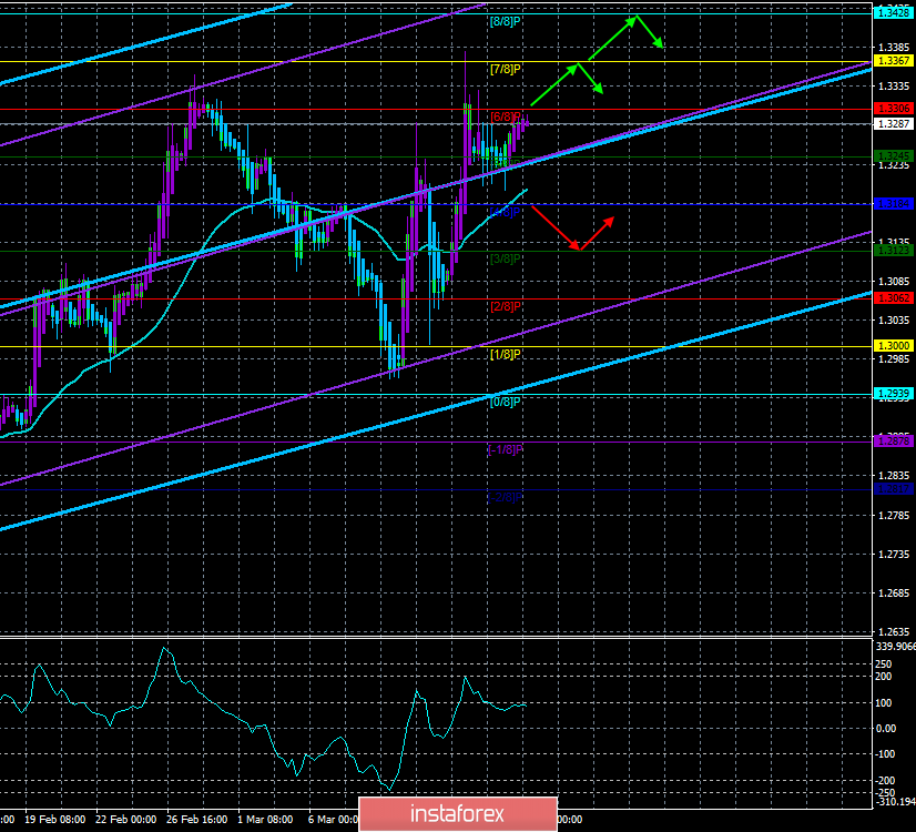 Валютная пара GBP/USD вернулась к уровню Мюррея «6/8» - 1,3306. А Великобритания полнится слухами о развитии ситуации по Brexit. Тереза Мэй назначила новое голосование по ее варианту соглашения с ЕС на 19 марта и уже успела сообщить, что это голосование может и не состояться, если не будет получена предварительная должная поддержка со стороны парламентариев.
