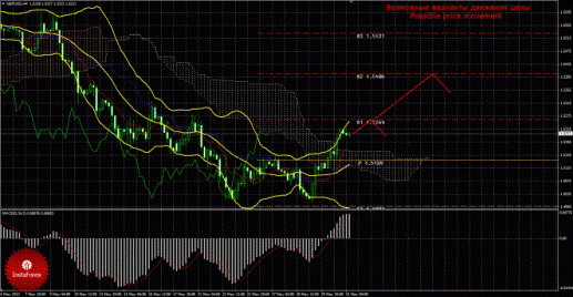 Валютный курс фунта 31 мая продолжает отрабатывать новый «золотой крест» и восходящее движение, признаков начала коррекционного движения на данный момент нет. Текущий сигнал на покупку – подтвержденный и сильный, так как Чинкоу Спан закрепился выше графика цены, а цена преодолела облако Ишимоку. На данный момент целью восходящего движения является первый уровень сопротивления 1,5264. В случае преодоления этого таргета, восходящее движение может продолжиться с целью второй уровень сопротивления 1,5406. Восходящее движение сохраняется до тех пор, пока цена находится выше Киджун-сен (1,5125), если цена закрепится ниже этой линии, то сигнал на покупку ослабится, а дальнейшее восходящее движение будет поставлено под вопрос, зато сможет вновь возобновиться нисходящее движение с целью первый уровень поддержки 1,4997. Чинкоу Спан находится выше графика цены, что является подтверждением текущему сигналу на покупку и означает бычье настроение валютных трейдеров по этой валютной паре. Боллинджер Бандс показывает начало восходящего движения, полосы расширяются и направлены вверх, поэтому сейчас длинные позиции можно рассматривать. MACD направлен вверх, что свидетельствует о текущем восходящем движении, разворот этого индикатора вниз может просигнализировать о возможном начале витка нисходящей коррекции. Если цена отскочит от уровня сопротивления 1,5264, это также может спровоцировать нисходящее коррекционное движение.
