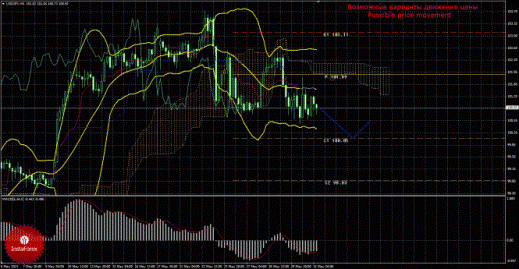 Анализируя курс иены на рынке Форекс 31 мая, видно, что цена за вчерашний день ни прибавила, ни убавила, находясь весь день на одном месте и начав, вероятно, боковую коррекцию. Текущий сигнал на продажу является подтвержденным и сильным, так как Чинкоу Спан находится ниже графика цены, а цена располагается ниже облака Ишимоку. Поэтому сейчас целью для нисходящего движения является первый уровень поддержки 100,05. В случае преодоления первого таргета, нисходящее движение сможет продолжиться с целью - второй уровень поддержки 98,83. Нисходящее движение будет актуальным до тех пор, пока цена находится ниже критической линии Киджун-сен (101,50), если цена закрепится выше этой линии, то нисходящее движение может завершиться, а цена предпримет еще одну попытку возобновить восходящее движение с целью первый уровень сопротивления 103,11. Чинкоу Спан находится ниже графика цены, что является подтверждением текущему сигналу на продажу и означает медвежье настроение участников рынка по валютной паре доллар/иена. Боллинджер Бандс показывает боковое движение, полосы направлены вбок и не расширяются ни в одну из сторон, поэтому сейчас на рынке не рекомендуется рассматривать любые позиций, а от нижней полосы Боллинджера цена может отскочить и начать движение к верхней полосе. MACD развернулся наверх, что говорит о текущем восходящем движении и не разрешает сейчас находится в шортах, разворот этого индикатора вниз может просигнализировать о возможном возобновлении нисходящего движения. Отскок цены от нижней полосы Боллинджера или от уровня 100,05 может спровоцировать восходящую коррекцию или возобновление восходящего движения.