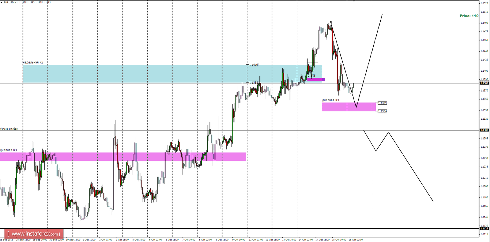 Движение текущей недели позволило приблизиться к месячной КЗ и протестировать сентябрьский максимум. Это вызвало появление предложения и снижение курса на 1%. Дальнейшее развитие событий будет зависеть от реакции цены на контрольную зону младшего периода.