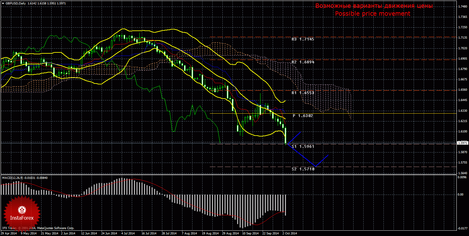 По валютной паре GBP/USD продолжается нисходящее движение. Рекомендуется рассматривать варианты коротких позиций с целью 1,5961. Вторым таргетом при преодолении первого будет выступать уровень 1,5710. Стоп лосс при торговле на понижение рекомендуется располагать выше Киджун-сен, которая на данный момент равна 1,6300. При достижении уровня прибыли по короткой сделке 100-150 пунктов, рекомендуется переводить ордер в безубыток. Закрывать шорты можно будет при отскоке цены от уровня 1,5961 или в случае разворота индикатора MACD вверх. Ордера тейк - профит для продаж можно выставить чуть выше целевых уровней, то есть на отметках 1,5980 и 1,5730.