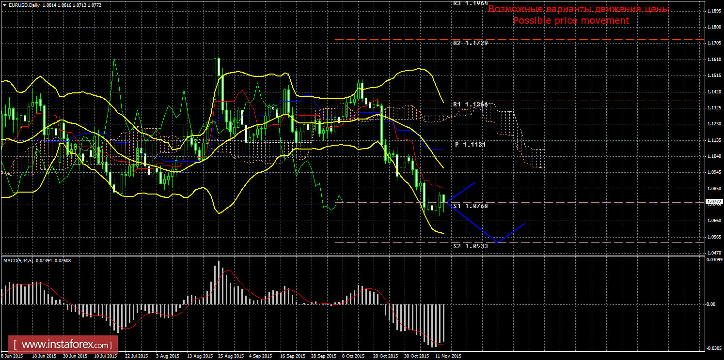 Евро на дневном таймфрейме начал слабую коррекцию и закрепился выше уровня 1,0768, индикатор MACD развернулся вверх. Текущий сигнал на продажу подтвержденный - Чинкоу Спан закрепился ниже графика цены - и сильный, так как цена располагается ниже облака Ишимоку. Первой целью для нисходящего движения сейчас является второй уровень поддержки 1,0533, если цена закрепится ниже уровня 1,0768. Если этот таргет будет преодолен, то новой актуальной целью будет являться третий уровень поддержки 1,0170. Нисходящее движение будет актуальным до тех пор, пока цена находится ниже линии Киджун-сен (1,1080), если цена закрепится выше критической линии, то дальнейшее нисходящее движение будет отменено, восходящее движение может продолжиться с целью первый уровень сопротивления 1,1366, сигнал на продажу будет поставлен на грань отмены, а ордера на продажу потеряют свою актуальность. Цена располагается ниже линий Тенкан-сен и Киджун-сен, что свидетельствует о текущем нисходящем движении. Тенкан-сен направлен вниз, что говорит нам о нисходящем движении в краткосрочном плане. Киджун-сен также направлен вниз, что свидетельствует о сохранении нисходящего движения и в среднесрочной перспективе. Чинкоу Спан находится ниже графика цены, что является подтверждением текущего сигнала на продажу и означает "медвежье" настроение трейдеров. Облако Ишимоку свидетельствует о нисходящем движении, оно направлено вниз и расширяется, что свидетельствует об усилении нисходящего импульса.