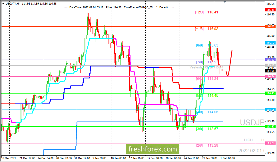 01 февраля 2022, USD/JPY. USD/JPY: цена протестировала уровень (6/8).