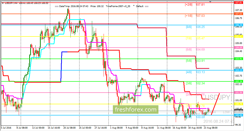 24 августа 2016, USD/JPY. USD/JPY: уровень (0/8) продолжает удерживать цену.