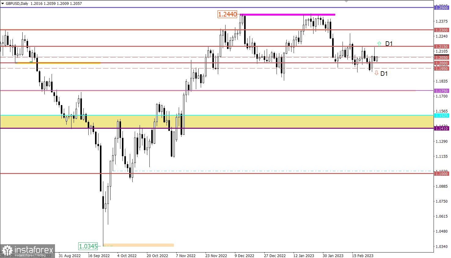 Рассмотрев изменения цен, можно сделать вывод, что участники рынка продолжают взаимодействовать с уровнем 1.2000. Чтобы получить ясный технический сигнал о завершении текущего цикла колебаний, необходимо выйти за пределы контрольных значений.