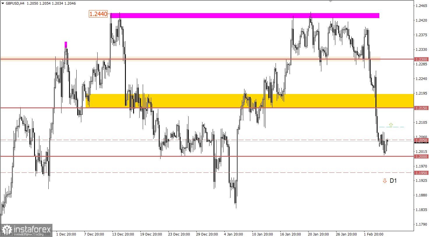 Валютная пара GBPUSD замедлила нисходящий ход в районе психологического уровня 1.2000. Вследствие чего инерционный цикл был прерван, а на рынке возник застой-откат.
