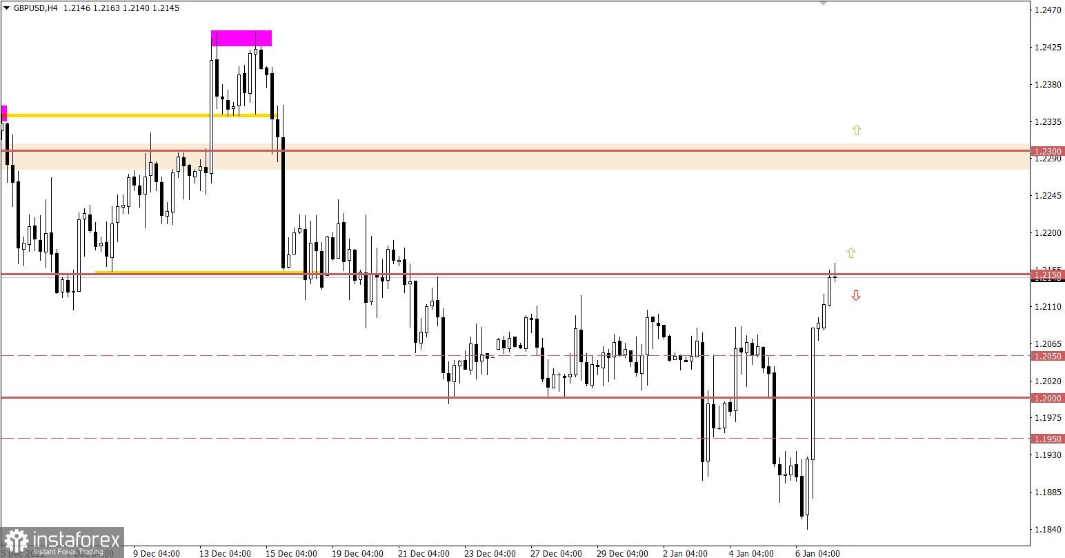 В данной ситуации инерционный восходящий ход может сохраняться на рынке за счет спекулятивного настроя трейдеров. Последующий рост объема длинных позиций ожидается после удержания цены выше уровня 1.2150 в четырехчасовом периоде.