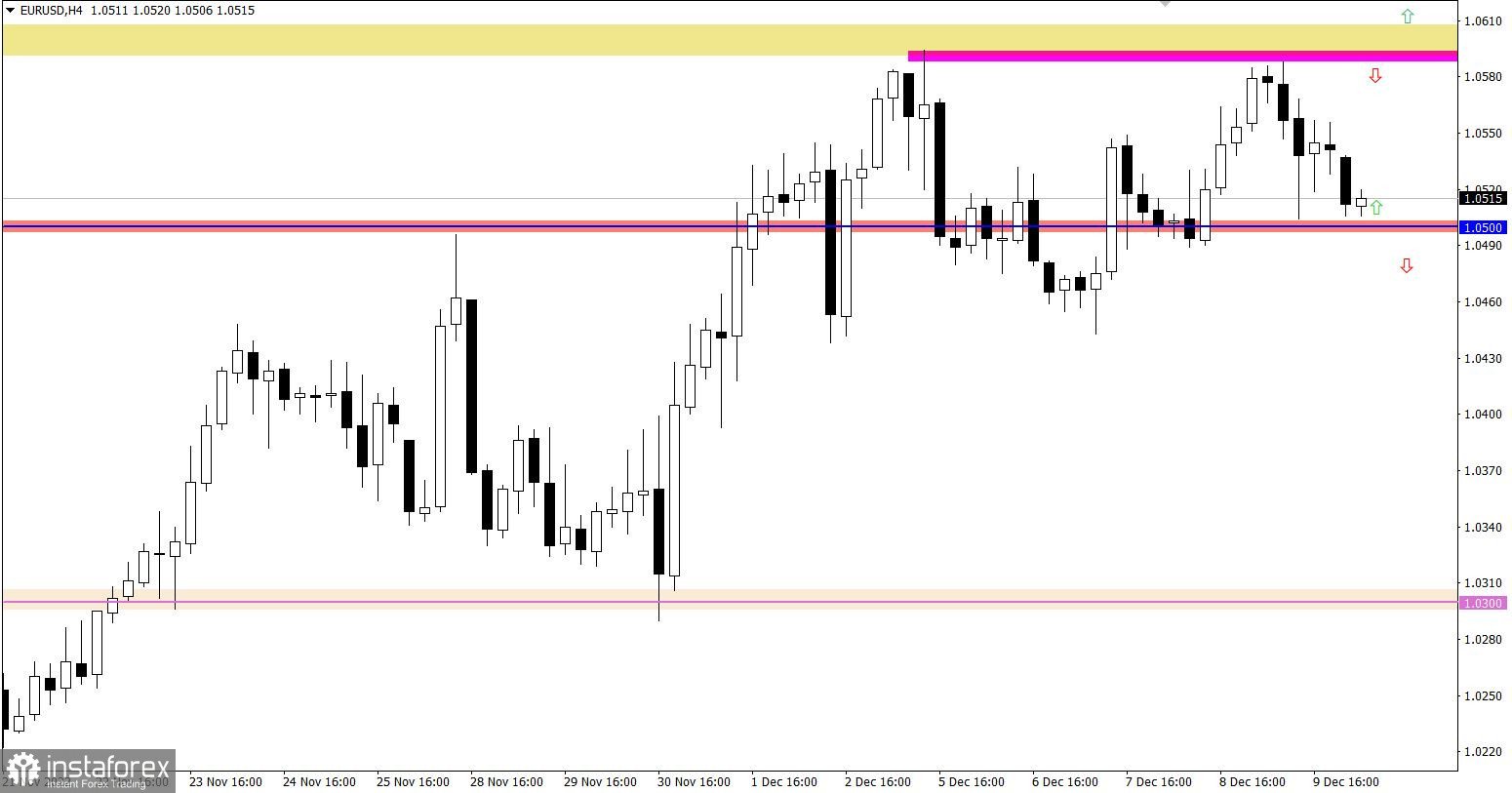 Нисходящий сценарий будет принят в работу в случае удержания цены ниже значения 1.0480 в четырехчасовом периоде.