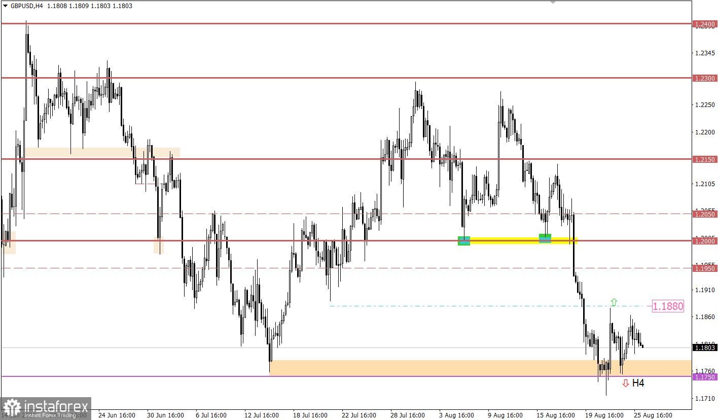 В качестве сигнальных уровней служат значения: 1.1750 – в случае удержания цены ниже него в четырехчасовом периоде у продавцов появится шанс на пролонгацию нисходящего тренда; 1.1880 – рассматривается покупателями в случае сценария полноразмерной коррекции на рынке.