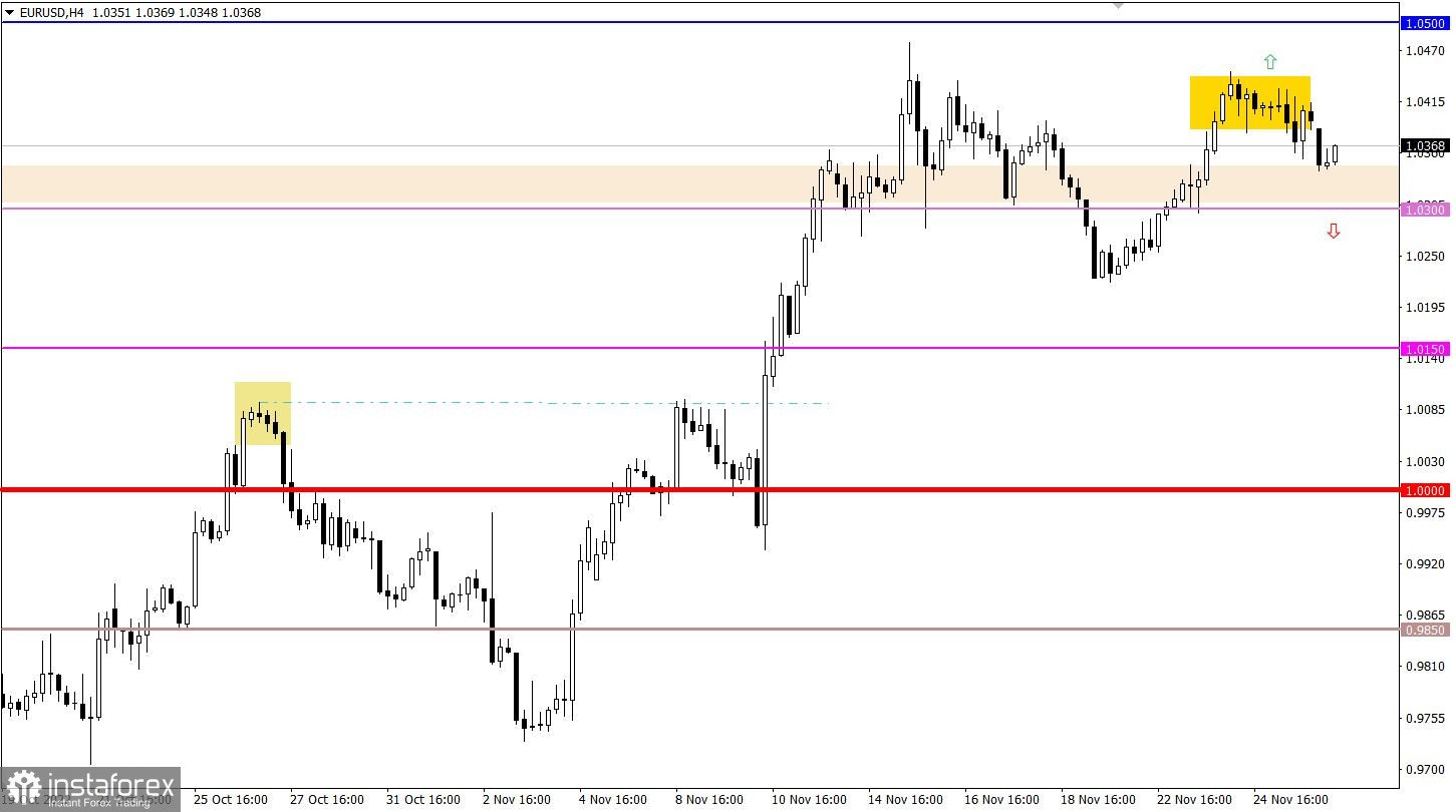 Валютная пара EURUSD завершила стадию застоя на пике восходящего цикла нисходящим всплеском активности. Вследствие чего котировка ушла ниже отметки 1.0350.