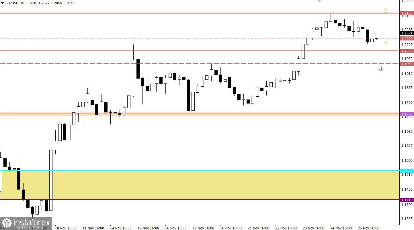 Что касается нисходящего развития цены, то для исполнения этого сценария котировке необходимо удержаться ниже отметки 1.1950. В этом случае может возникнуть смена торговых интересов.